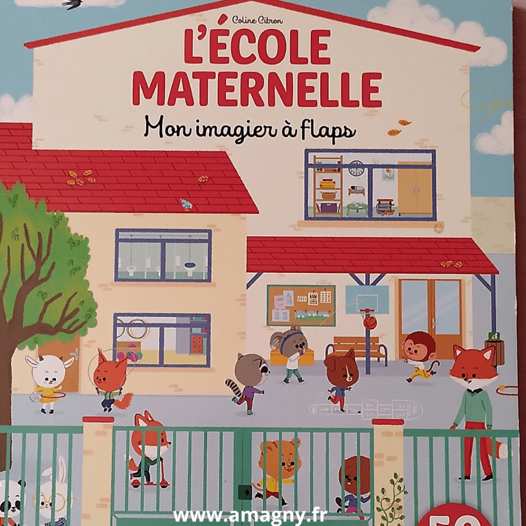 - A l’école maternelle, mon imagier à flaps aux éditions Tourbillon (2021). Il permet de passer en revu le vocabulaire usuel de l’école.