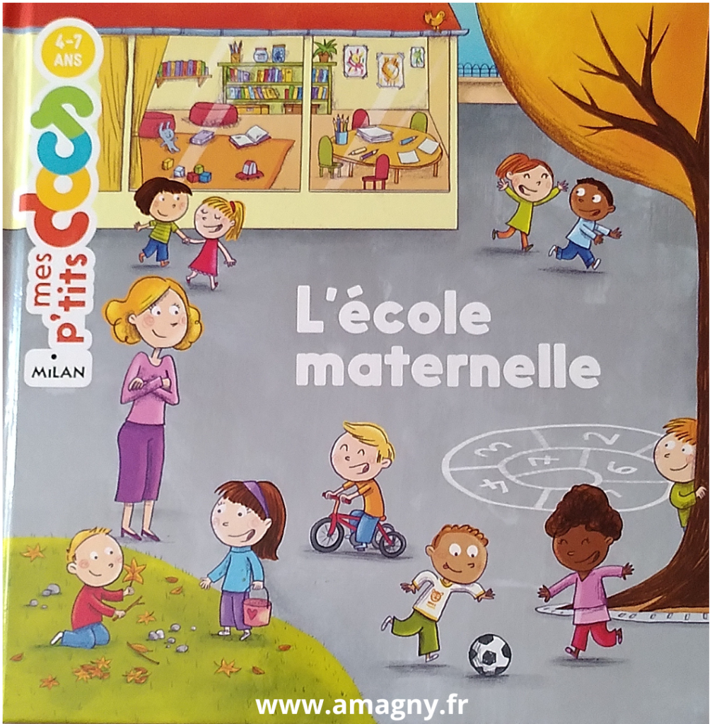 - L’école maternelle de la collection mes p-tits docs, édition Milan (2008). Alors vraiment si je ne devais en conseiller qu’un ce serait celui-ci. Je dois le connaître par cœur ! Pour un petit prix, il permet de passer en revu l’ensemble des moments de la journée à l’école.