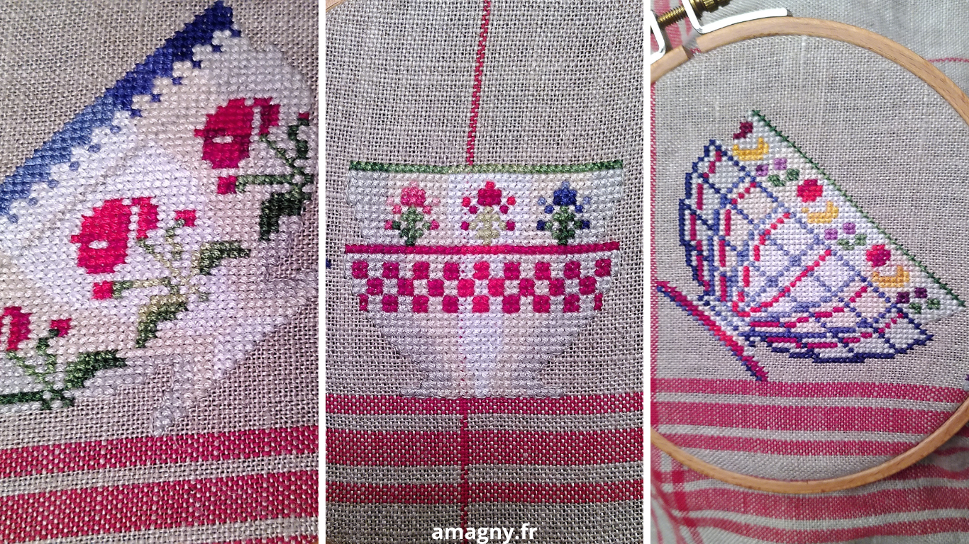 En parallèle, j’ai poursuivi la confection d’une nappe, disponible sur le site du Bonheur des Dames.